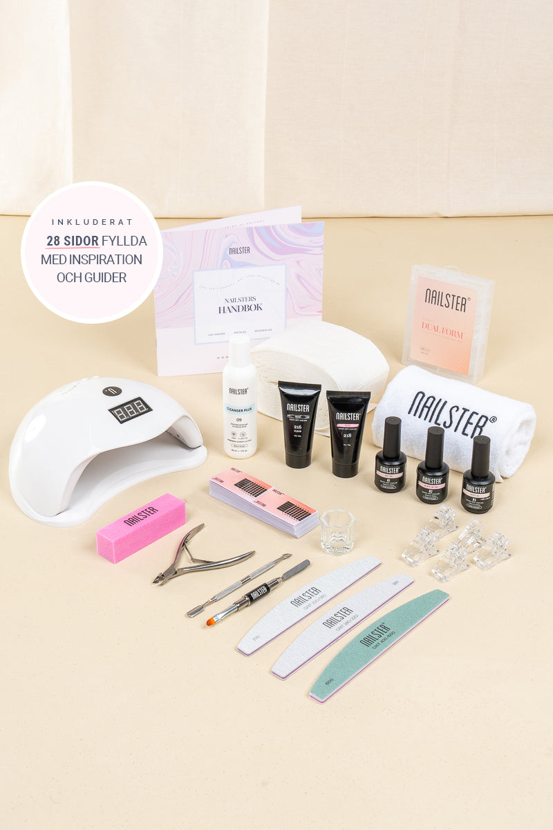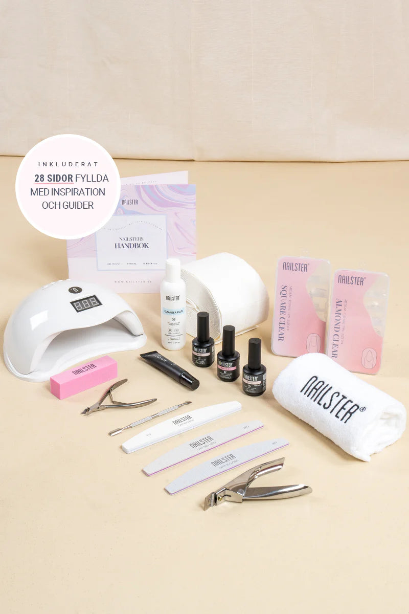 Vårt Nailster Basic Polygel Startkit innehåller alla kvalitetsprodukter du behöver för att syssla med nagelförlängning hemma. I startkitet ingår en exklusiv handbok som hjälper dig att komma igång på rätt sätt med bra instruktioner, smarta tips och mängder med inspiration!