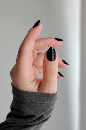 Den svarta färgen är superfin och ger två olika looks oavsett om du använder Top Coat Shine eller Top Coat Matte. Anmärkning: Färgen har en blåaktig ton i solljus.Den svarta färgen är superfin och ger två olika uttryck oavsett om du bär Top Coat Shine eller Top Coat Matte.