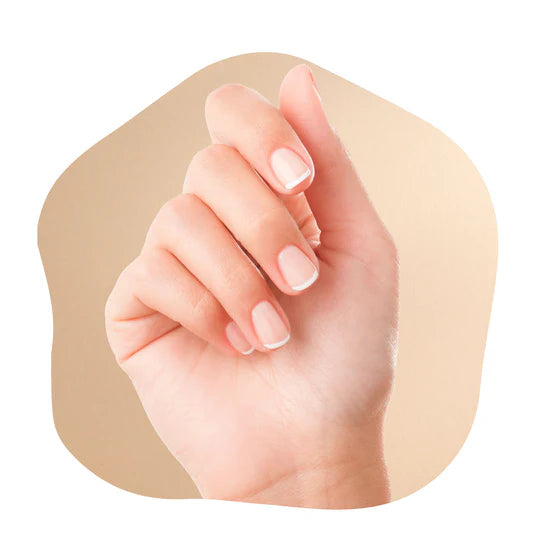 Under nagelplattan finns också det som kallas nagelbädden, rik på blodkärl och nerver, som ger näring och känslighet till nageln. Denna platta – den hårda delen av nageln som vi ofta dekorerar – är i första hand gjord av keratin, ett starkt protein som gör nageln robust mot dagligt slitage. Ovanpå nagelbandet hittar vi även lunulan - den halvmåneformade vita delen. Runt nageln finns även små hudveck, nagelband som hjälper till att stärka och skydda nageln från infektioner, och när nageln växer ut från fingertoppen skapas den fria kanten – den del vi brukar använda när vi klipper och filar våra naglar.